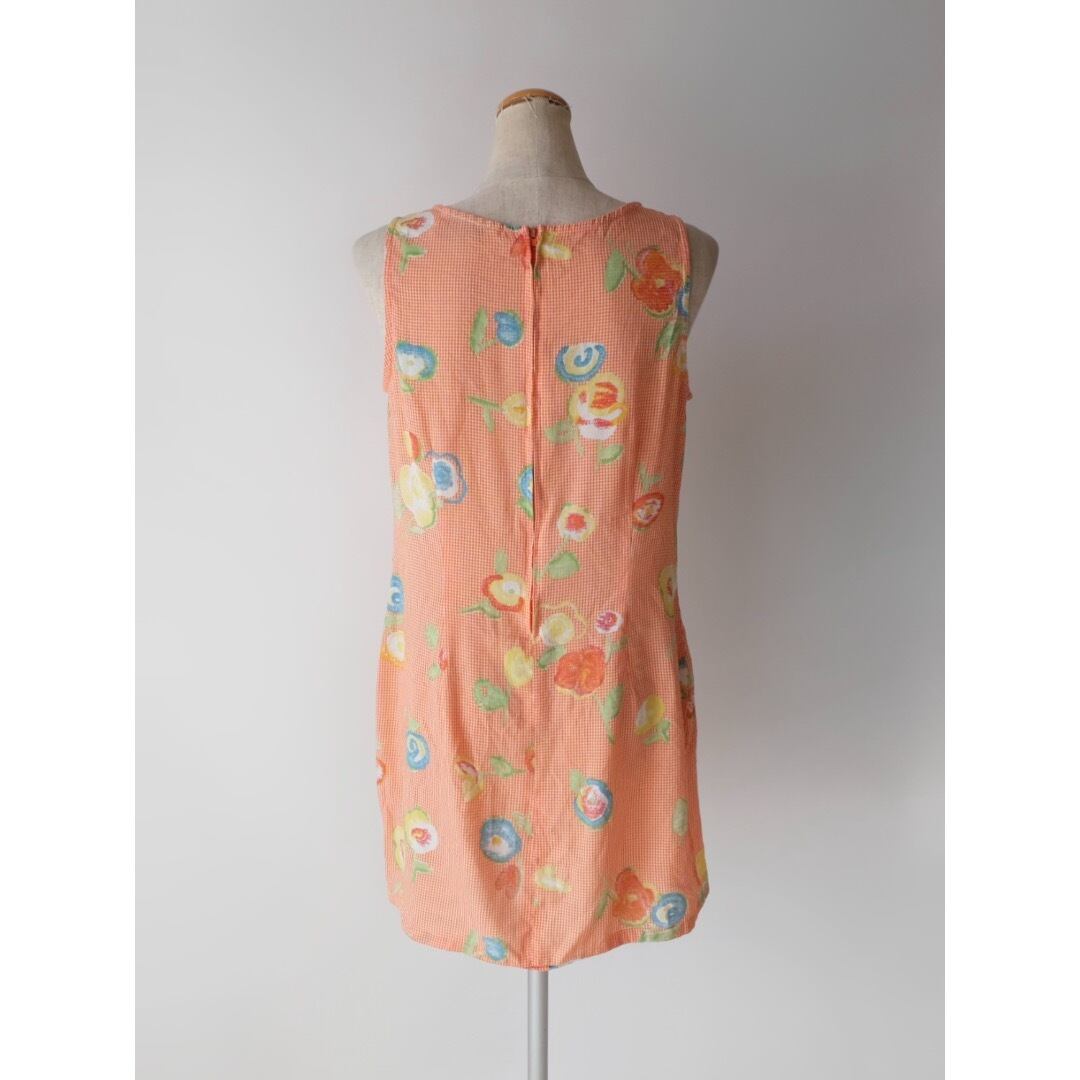 花柄 チェック ノースリーブ ミニ ワンピース