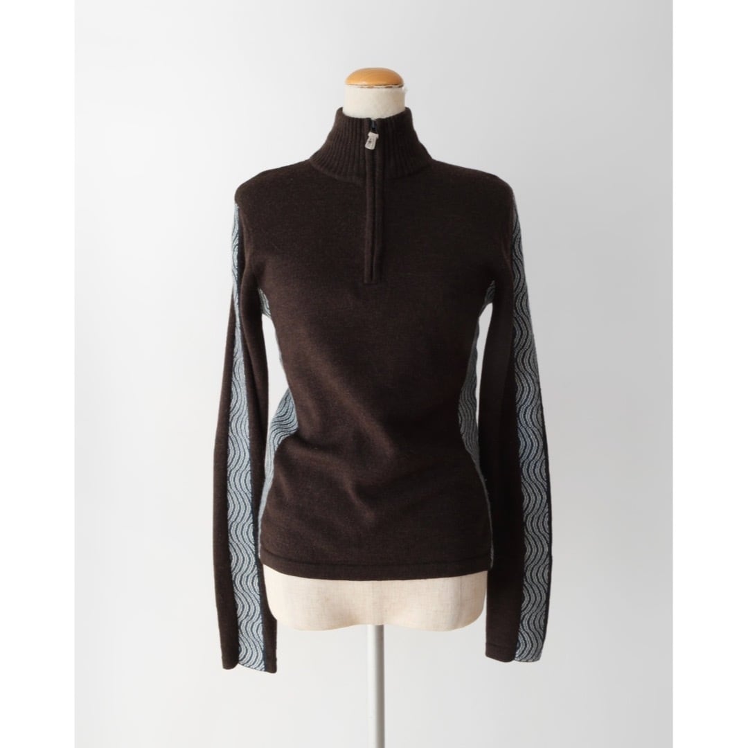 Wave line high neck knit sweater