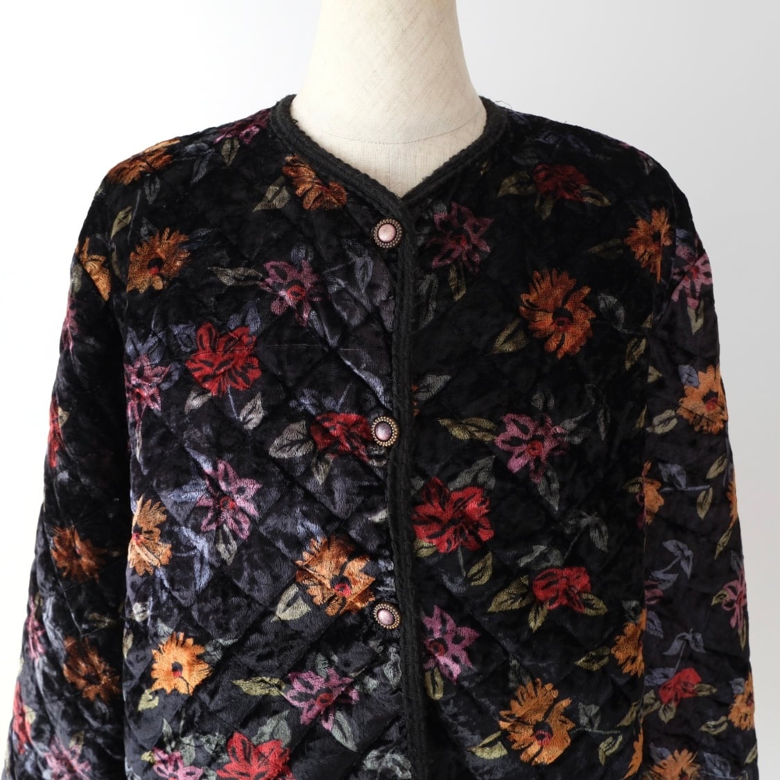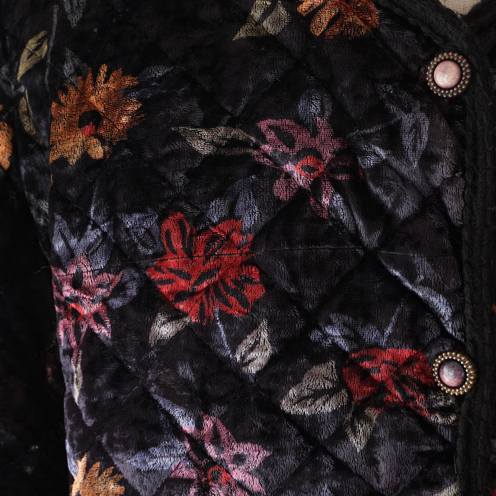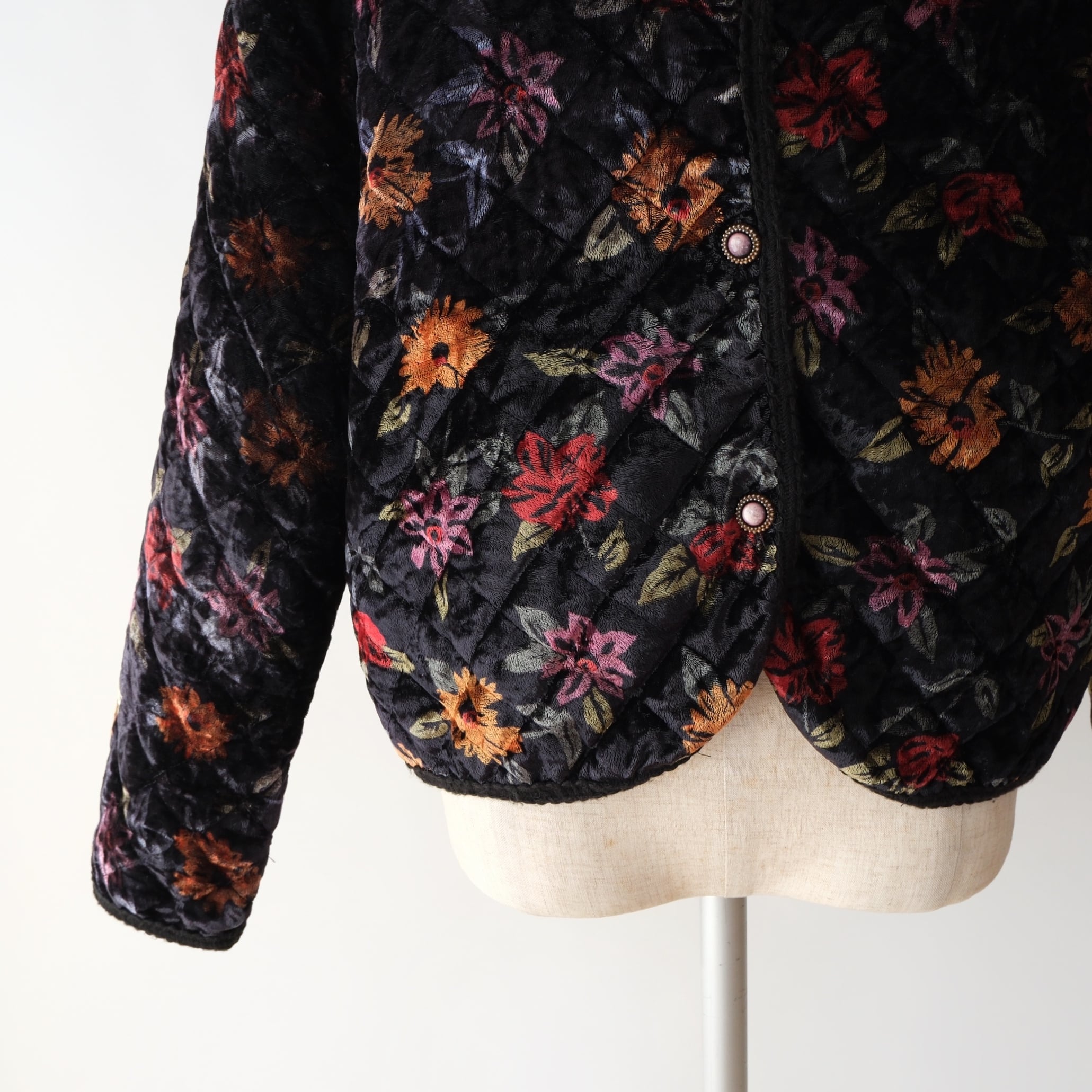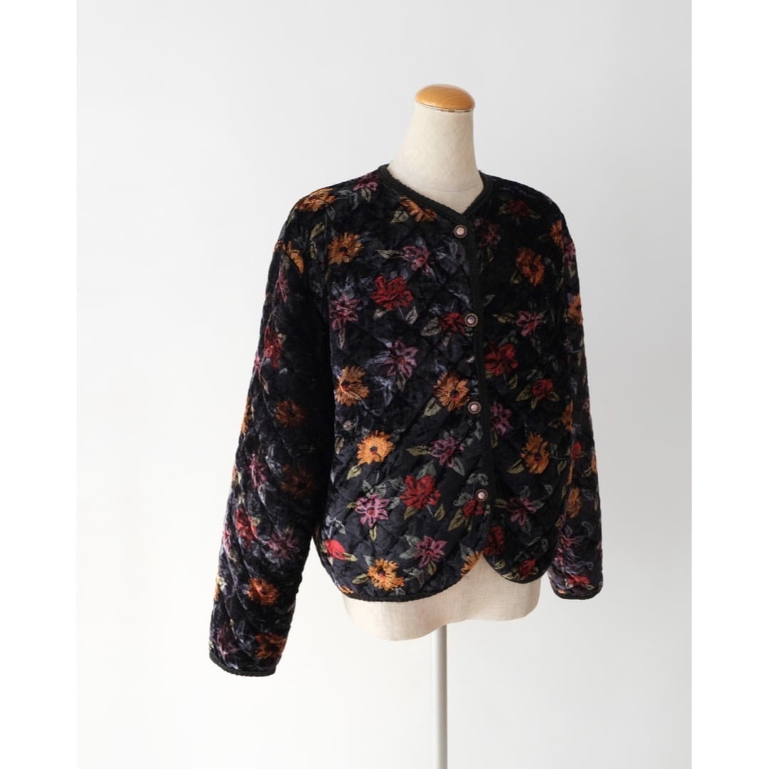 花柄 ベロア キルティングジャケット