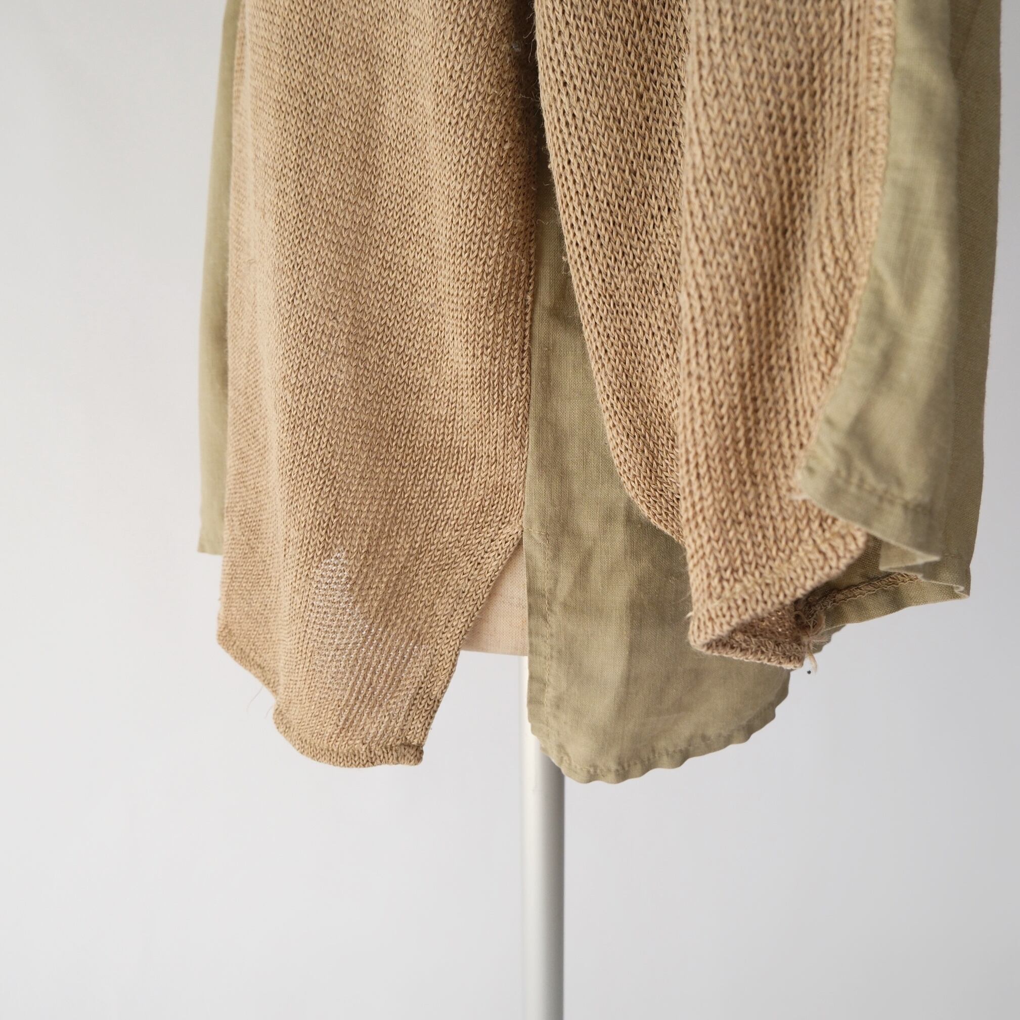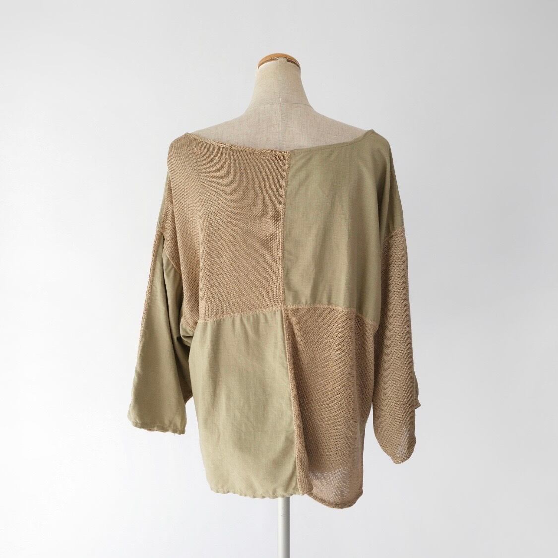 リネンブレンド パッチワーク トップス