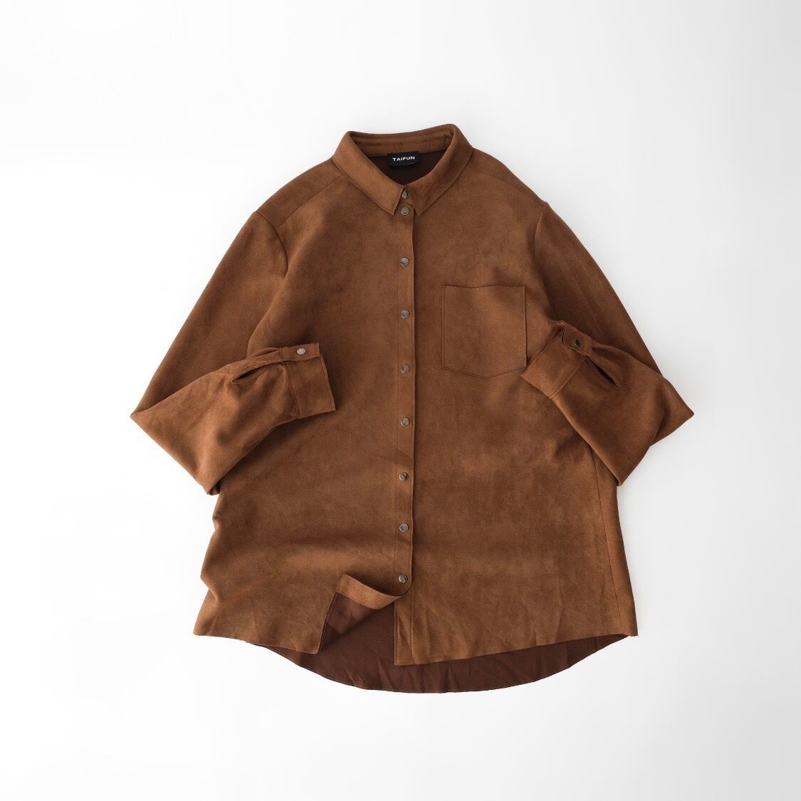 *しなやかでとろみのあるフェイクスエードです。体に馴染みやすく、上品な落ち感が美しい一枚です。