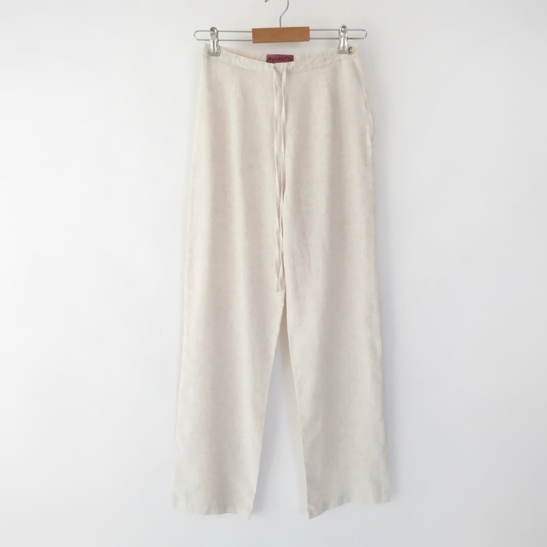 Ecru waist cord straight pants