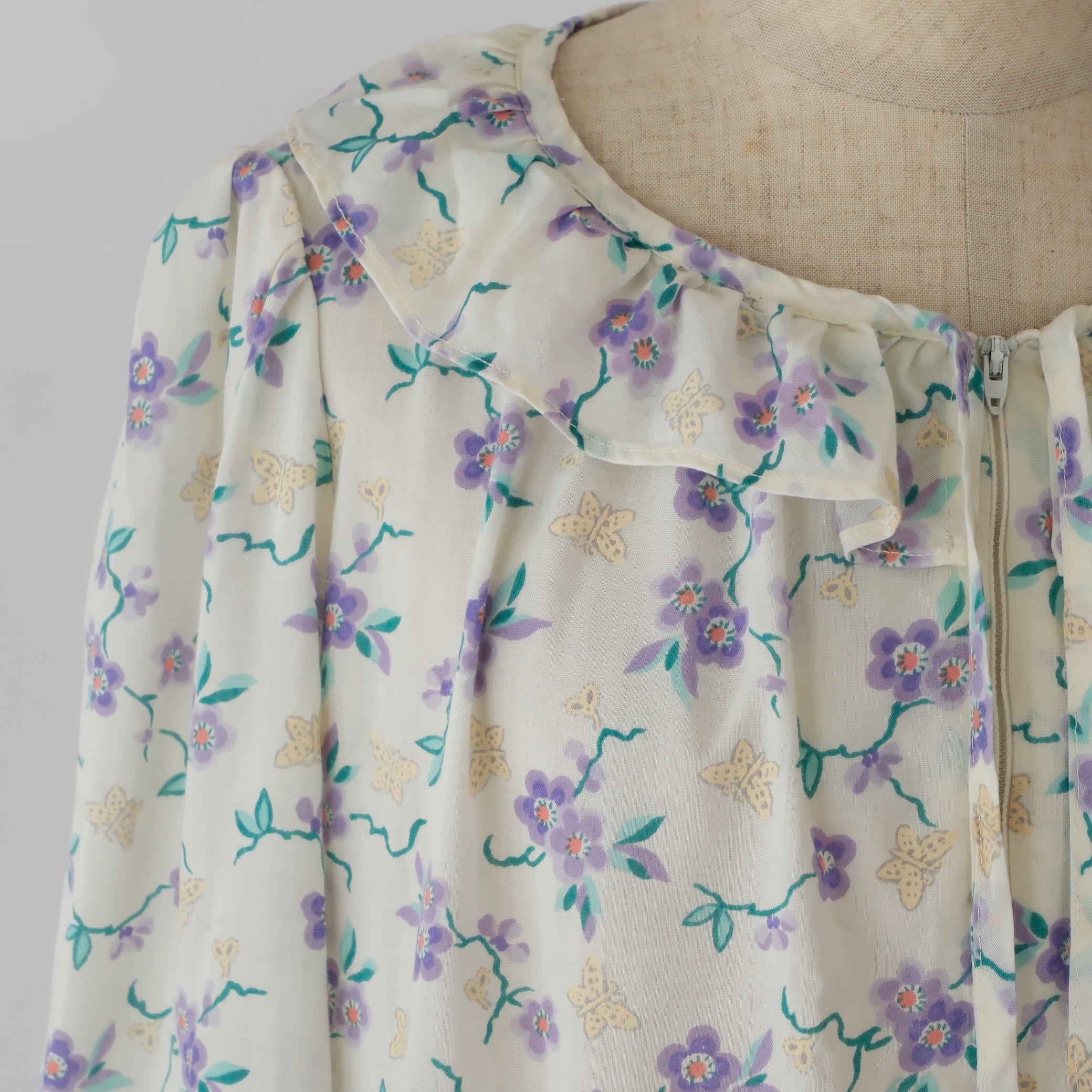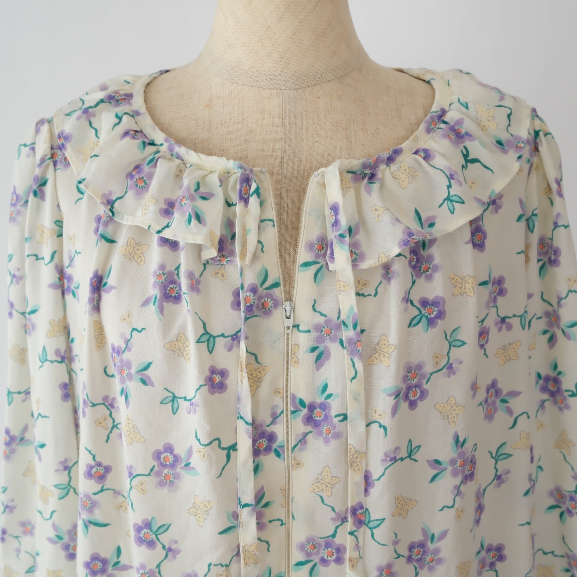 70s 花と蝶 ナイトドレス