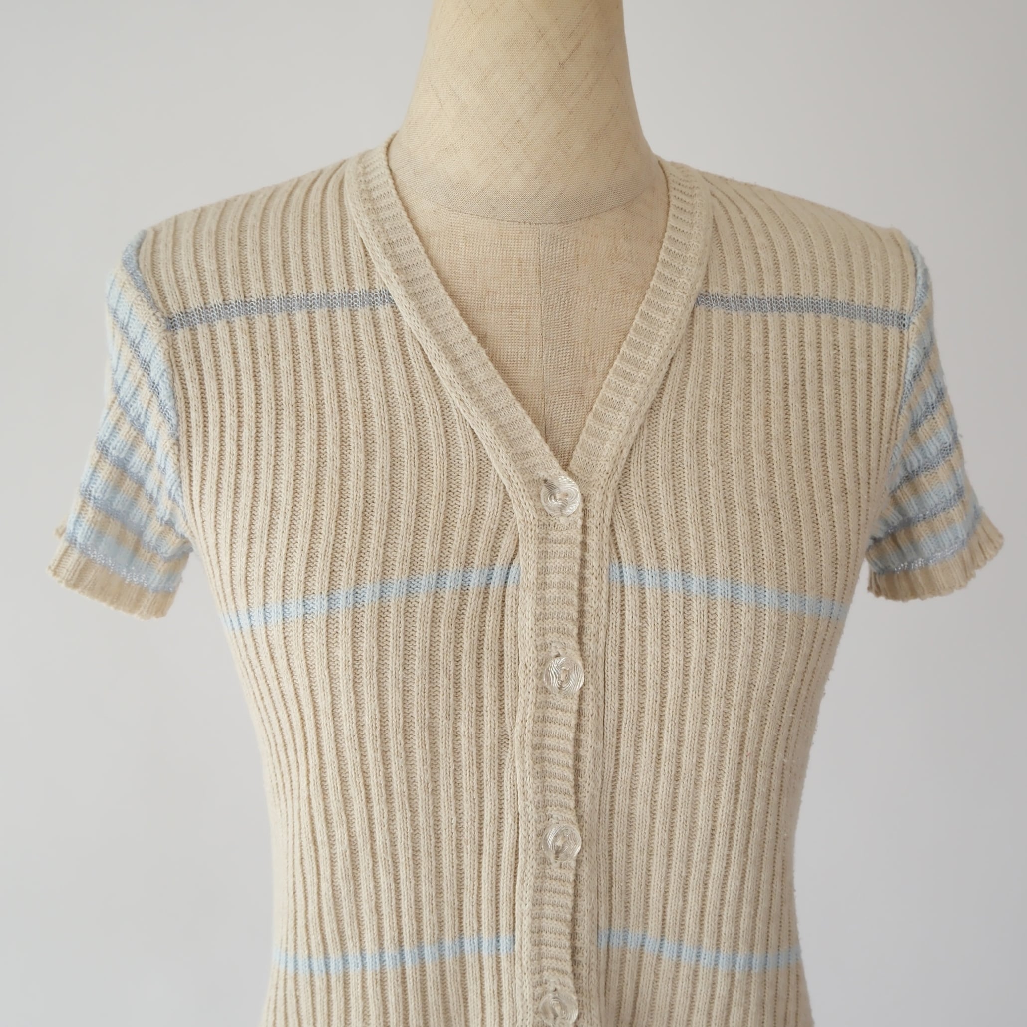 90s 半袖 リブニット カーディガン