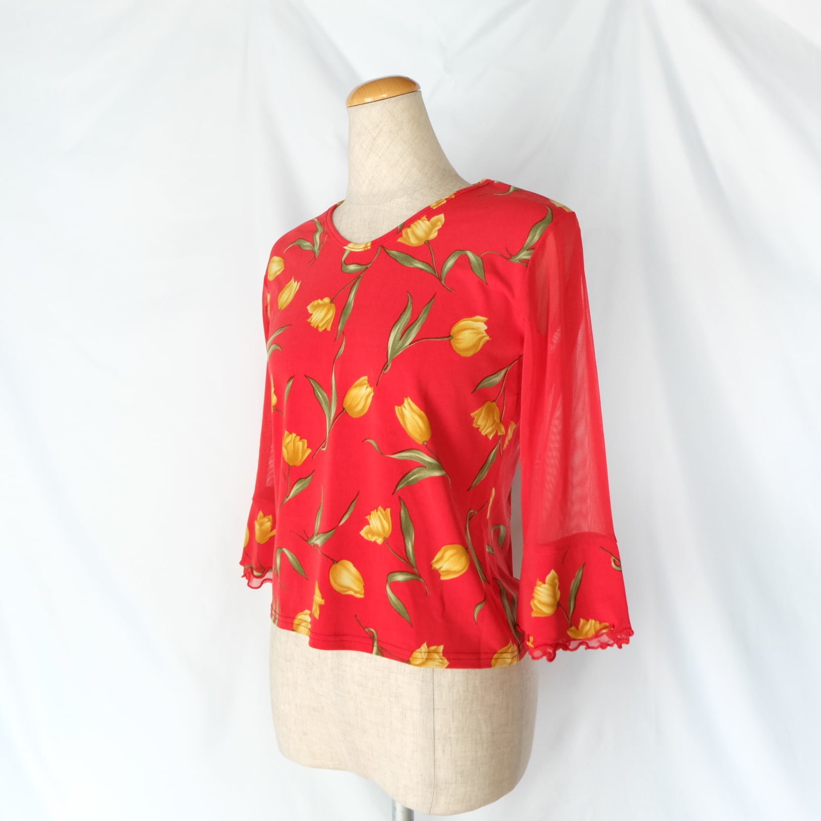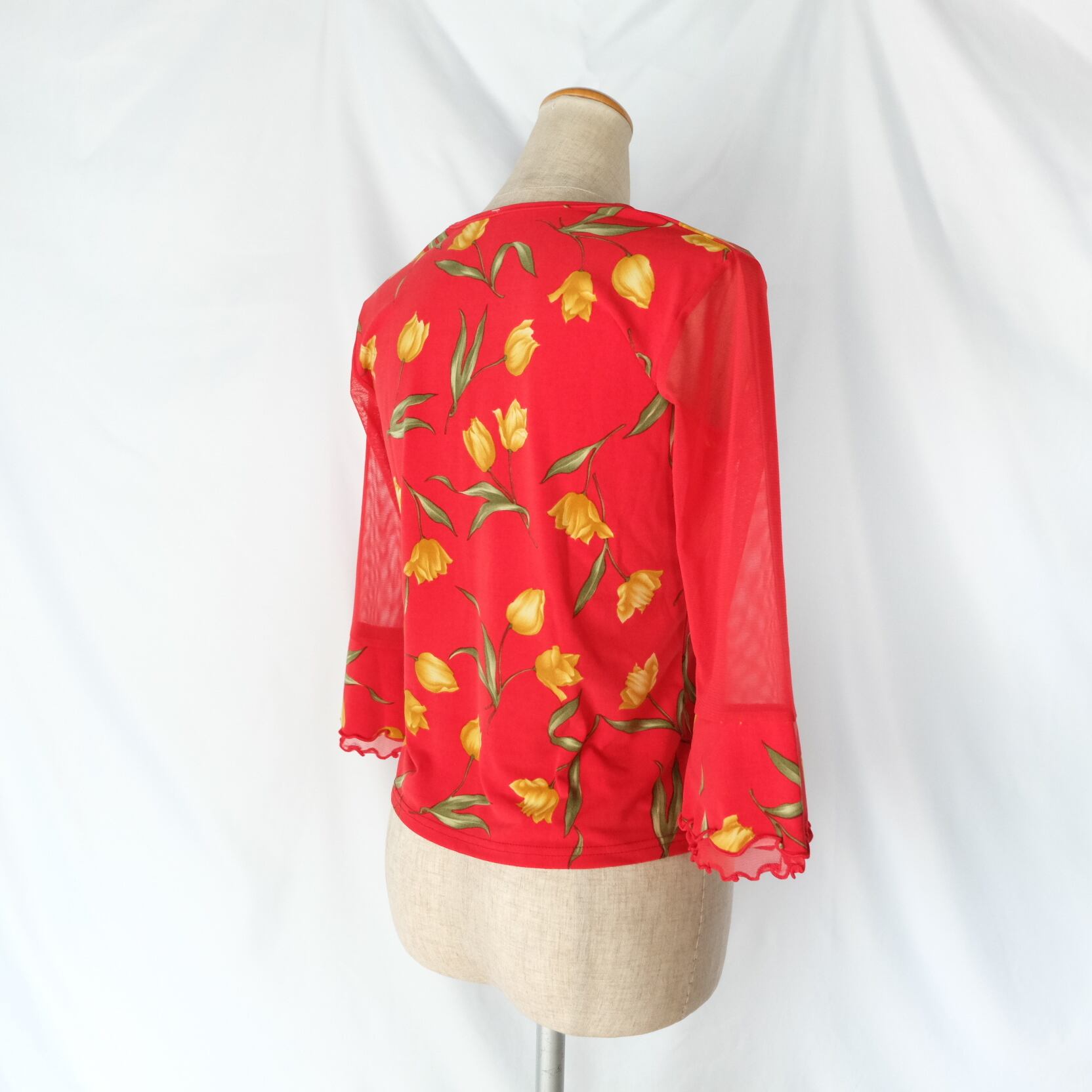 チューリップ メッシュ フレアスリーブトップス