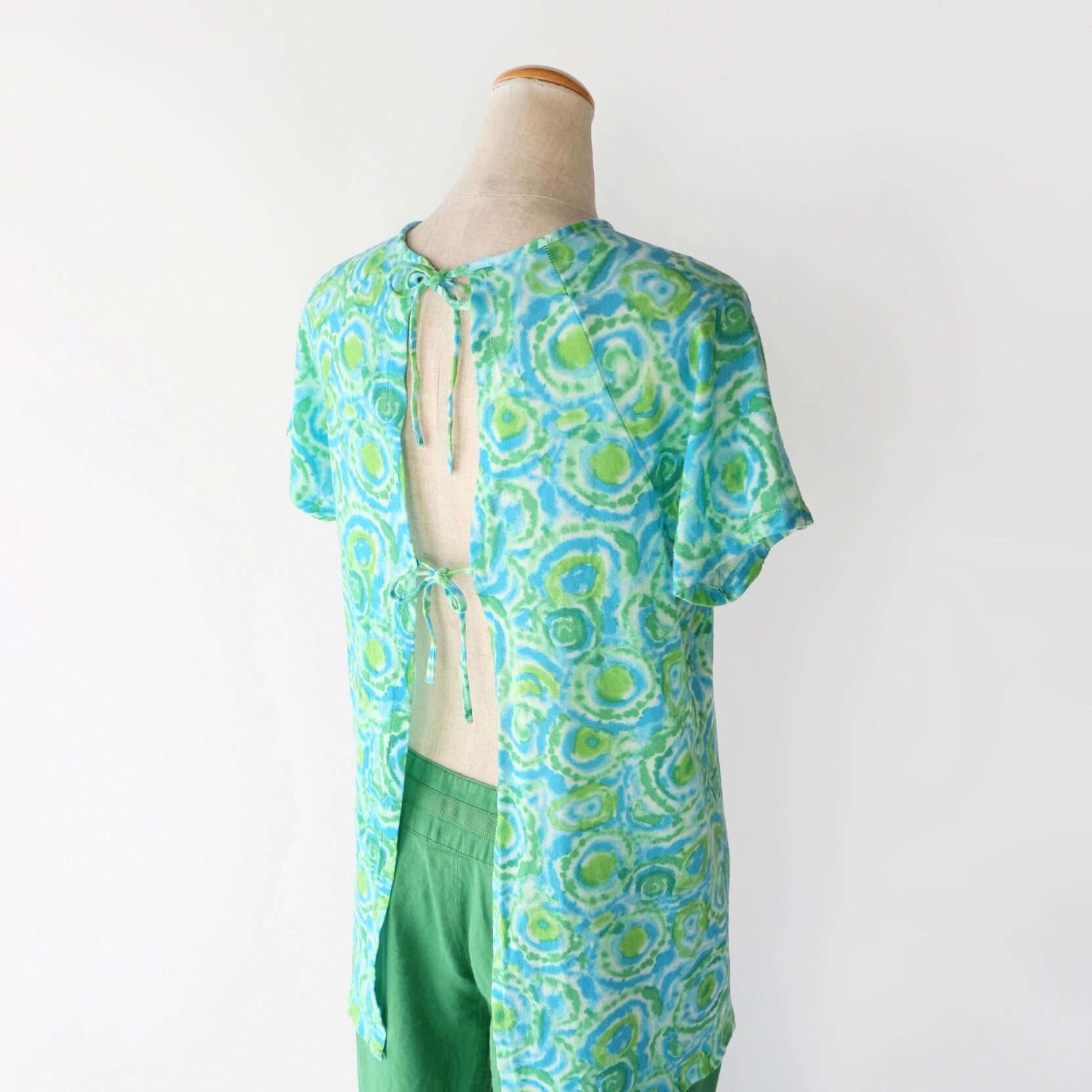 グリーン ブルー タイダイ トップス