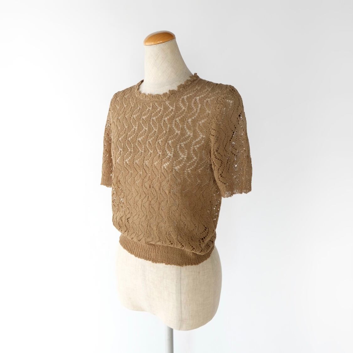 ブラウン サマーニット トップス