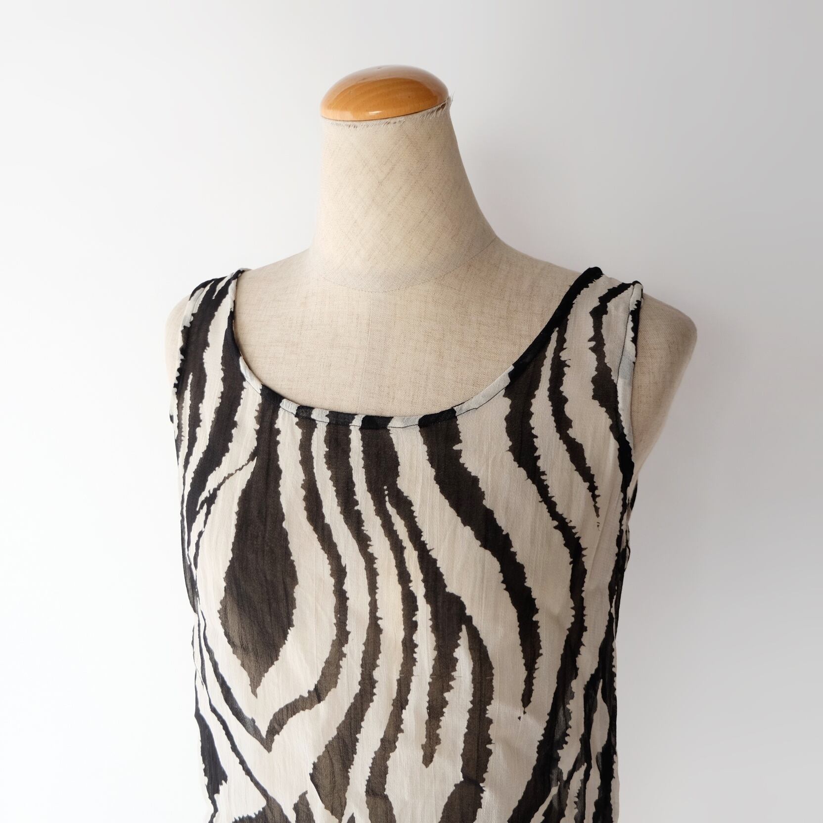 ゼブラ ノースリーブ シアートップス