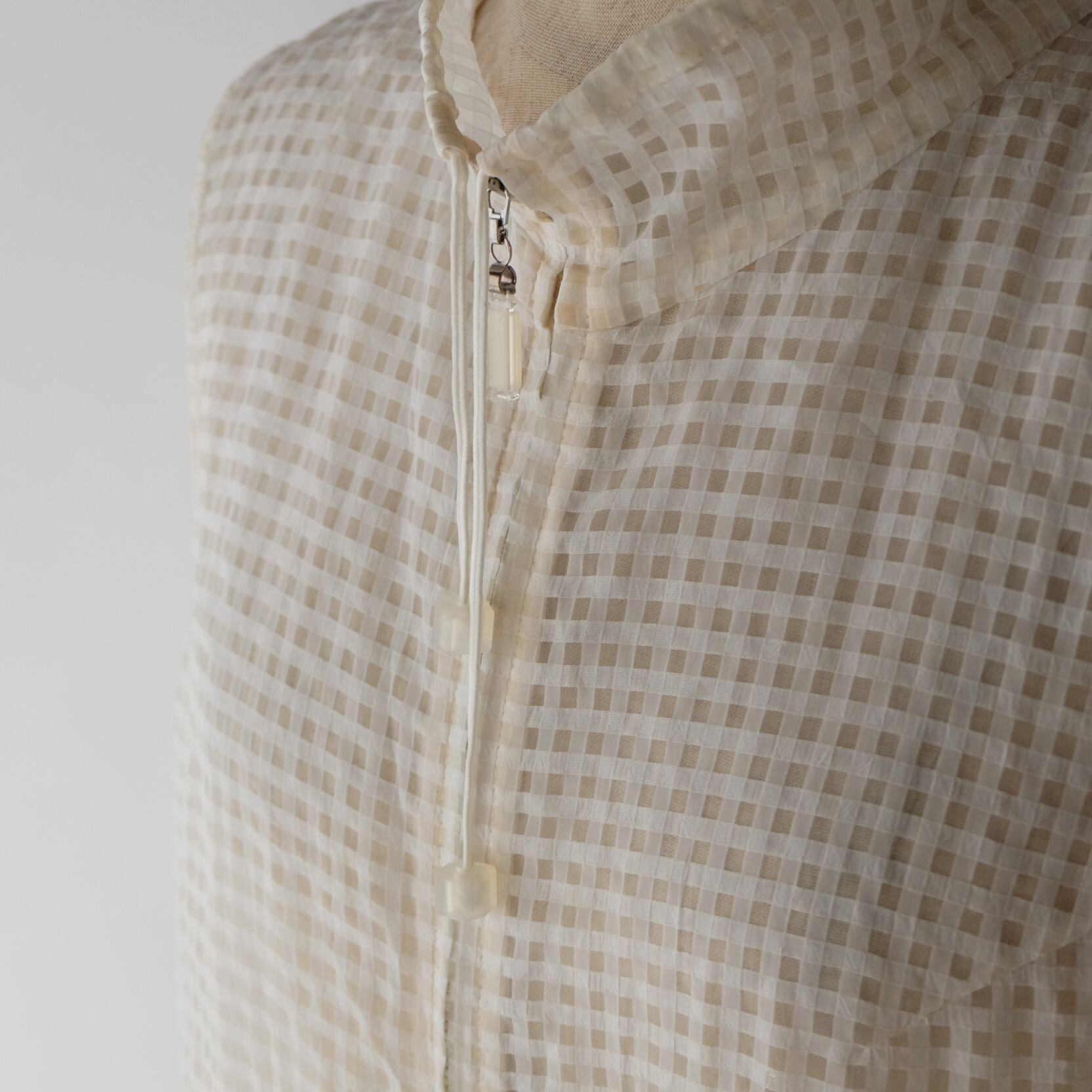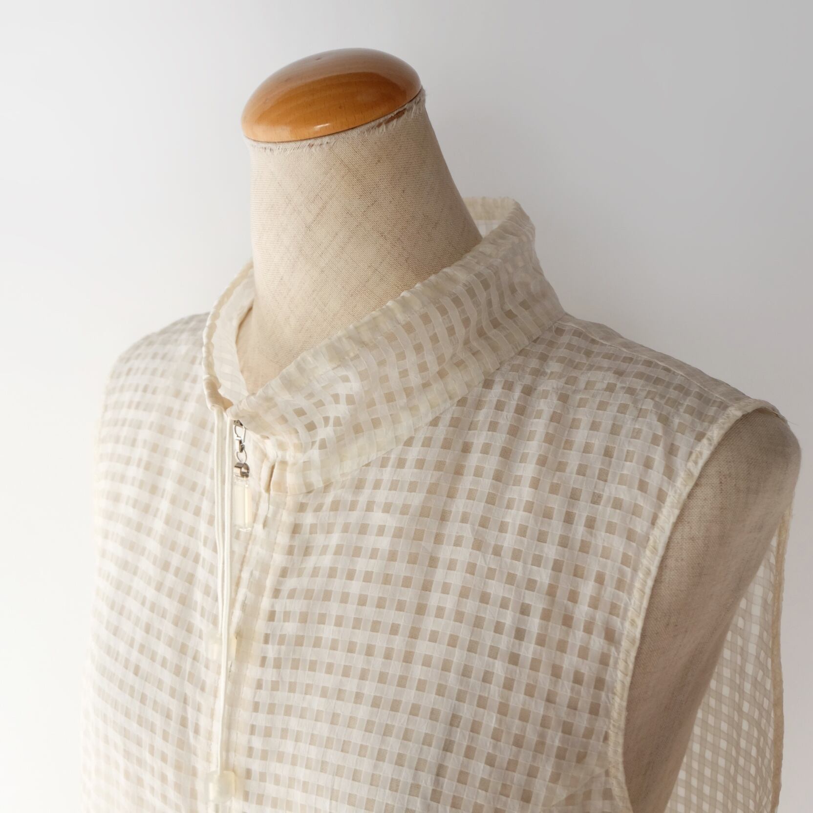 Hi-Neck plaid sheer vest
