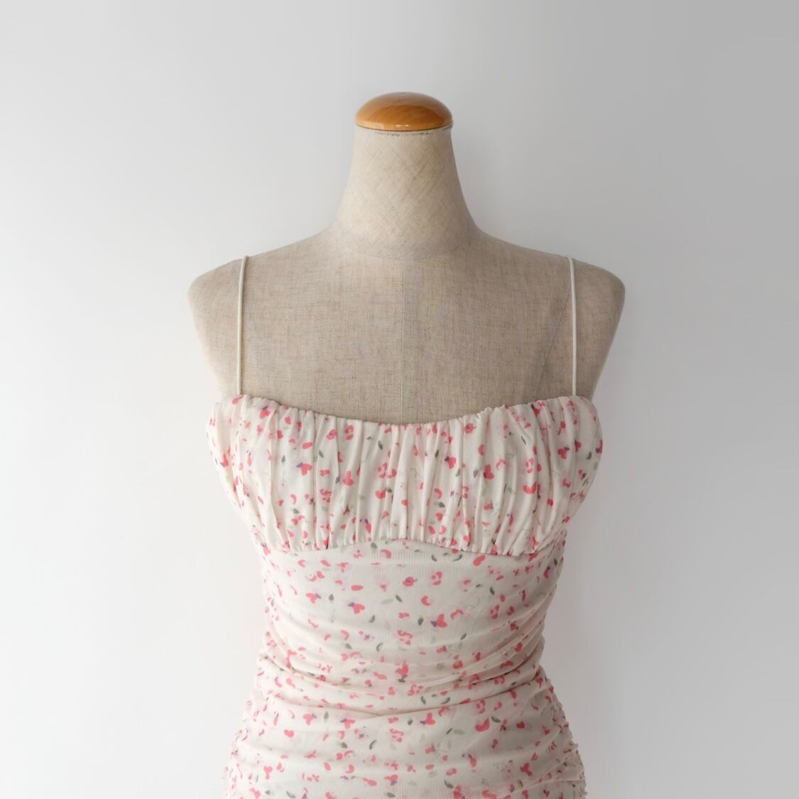 花柄 シャーリング ワンピース