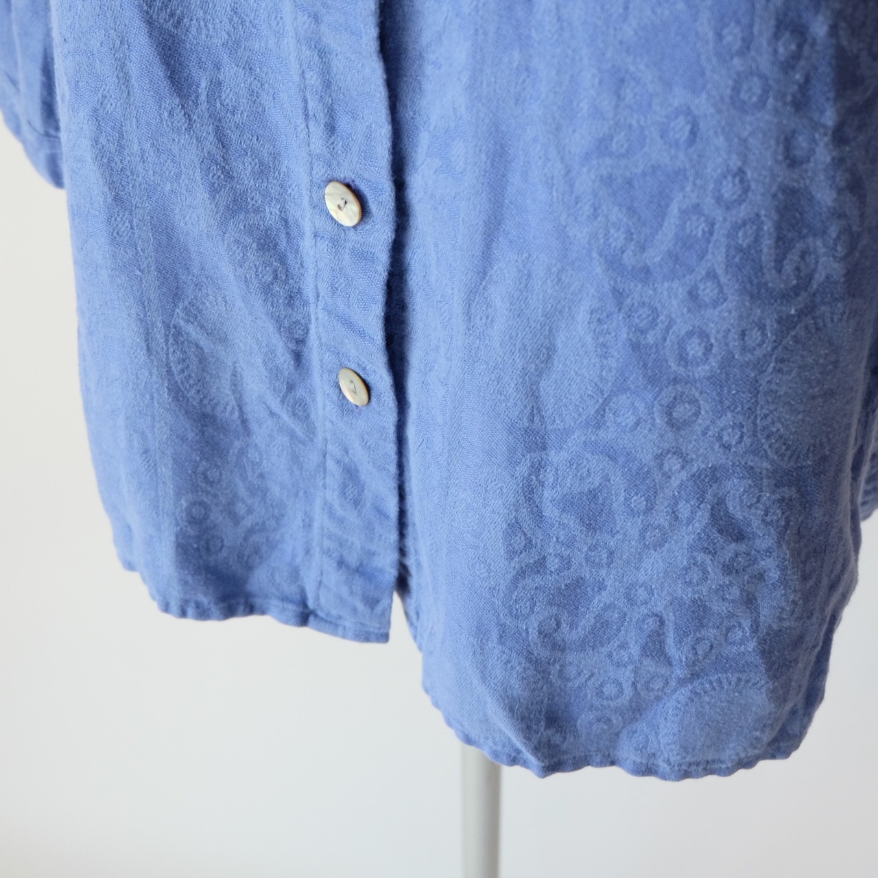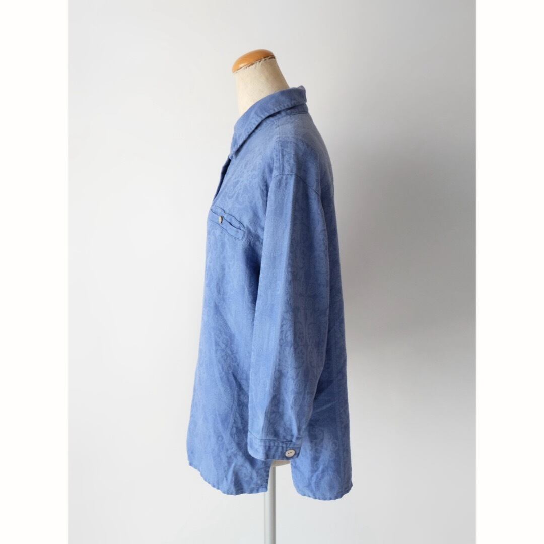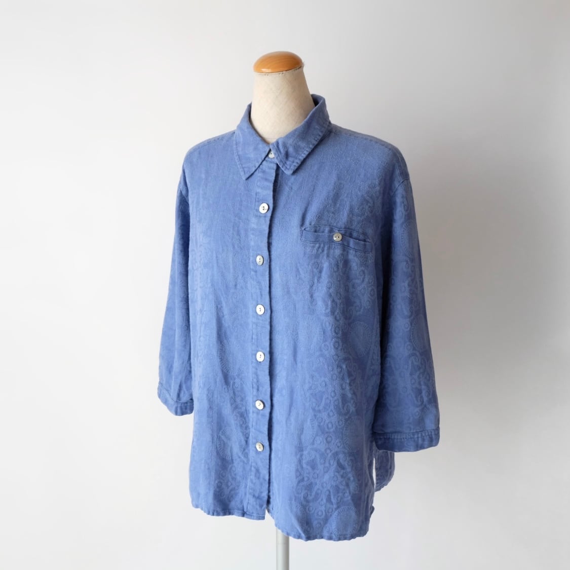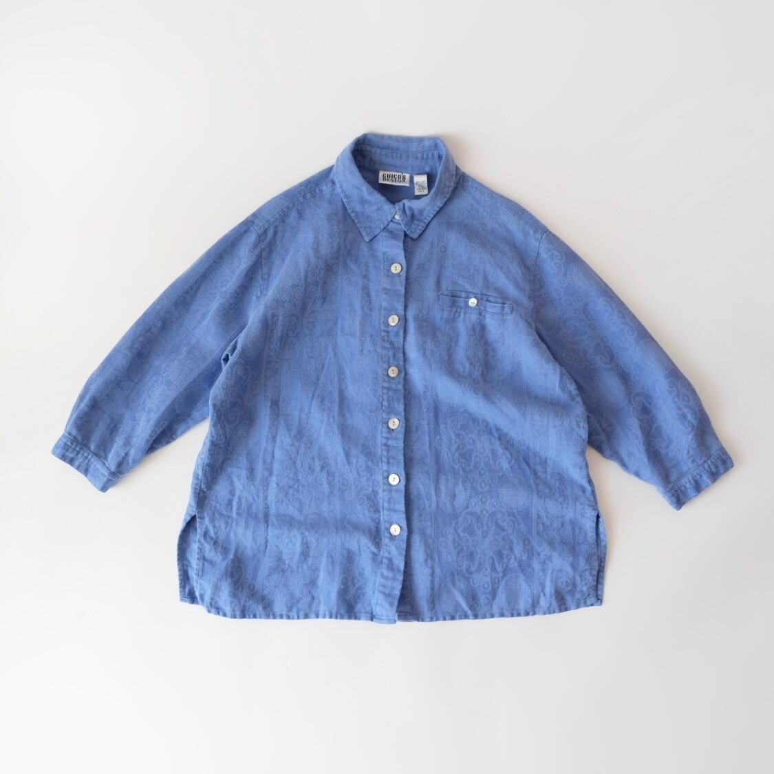 ブルー リネン コットン ジャガード シャツ